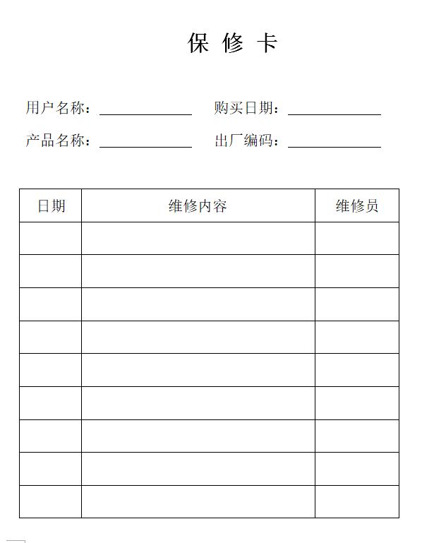 2、如非产品质量问题,操作人员不依照使用说明书安装、使用、维修的,均不在保修这列。