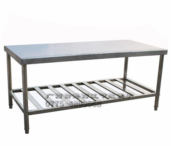 产品特点: 本产品采用优质201不锈钢板为原材料,激光切割下料,一次冲压折弯包边,面板内衬优质密度板, 全钢优质调节腿,加密隐蔽拉箍筋,选用精密优质紧固配件螺丝,品种齐全,有钢面木面,花格平板 等等,人工精抛细焊制作成型。产品外型美观大方,坚固耐用,是餐厅食堂酒店首选的厨房用品。 根据实际需要可定做。